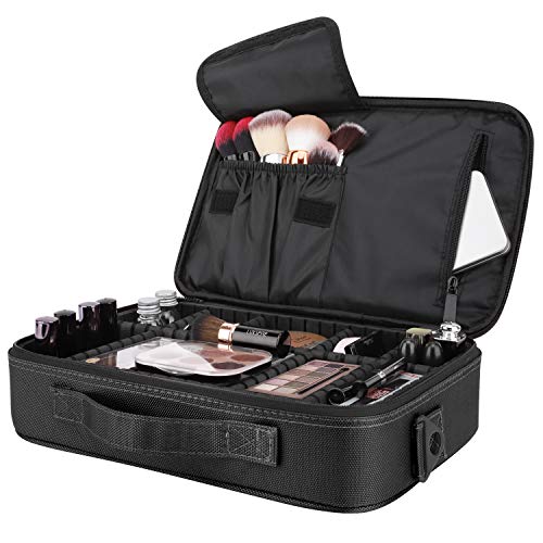 Luxspire Portátil Bolsa Cosmetica, Bolsa de neceser con gran capacidad y diseño divisible, Bolso de organizador maquillaje en viaje, Almacenamiento de Maquillaje Cosmético, Neceseres de viaje, Negro