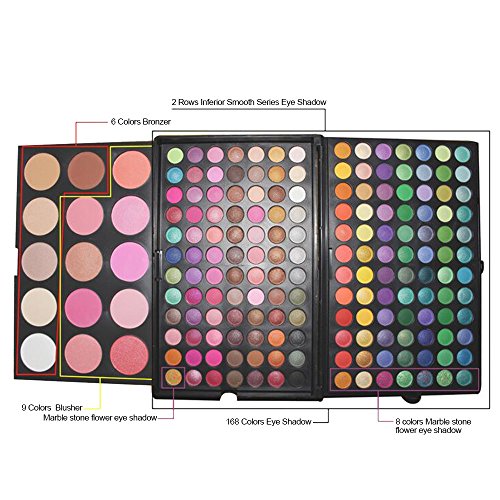JasCherry Paleta de Sombras de Ojos 183 Colores de Maquillaje Set Kit de alta Calidad Cosmético - Incluye sombra de ojos, Blush Colorete, polvo de acabado