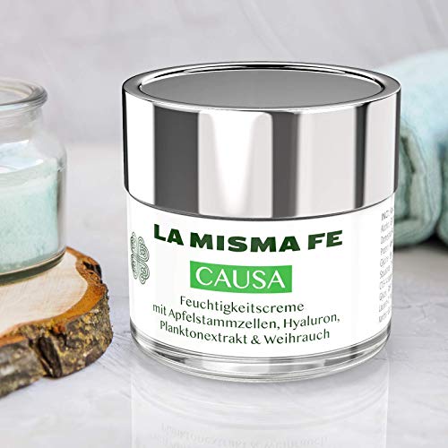 LA MISMA FE® Causa - Crema facial con células de manzana y ácido hialorónico, cuidado facial, antiedad, crema de día, bote de cristal, 50 ml, cosmética de alta gama, fabricado en España