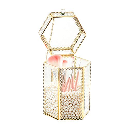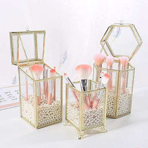 - 1. Aspecto exquisito: el soporte para brochas de maquillaje hecho a mano está diseñado con metal dorado y hecho de vidrio grueso, que es duradero, elegante y elegante.