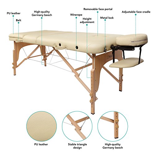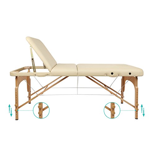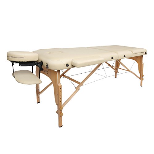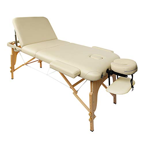 Naipo Mesa de Masaje Plegable de 3 Secciones Camilla Portátil y Profesional con Patas de Madera Respaldo Regulable Bolsa de Transporte Reposacabezas y Apoyabrazos Desmontables