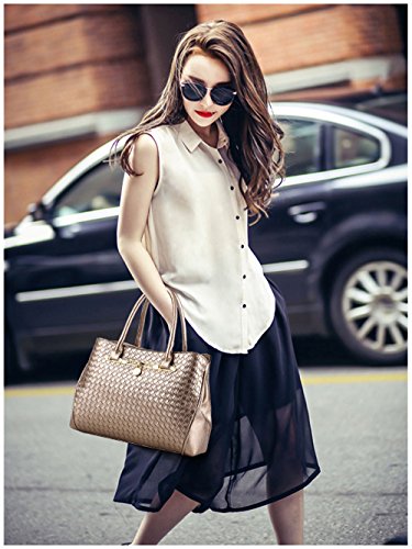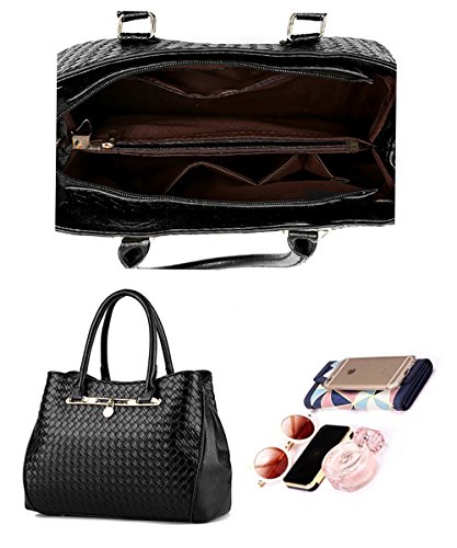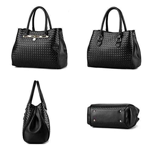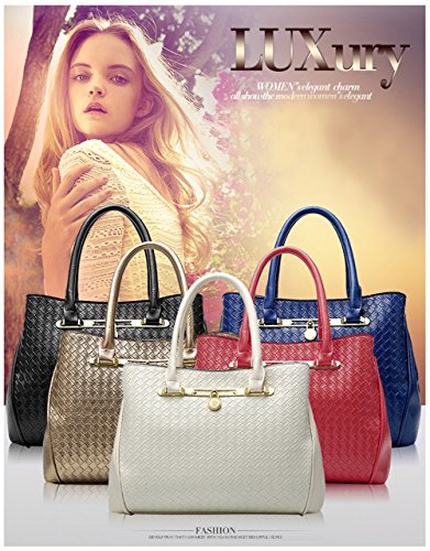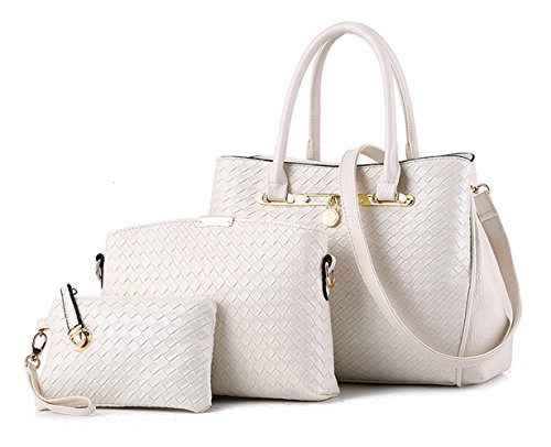 TIBES bolso manera Mujeres bolso PU cuero 3pcs fijó bolso tejido Bolso de hombro lujo Bolso muchachas B Blanco