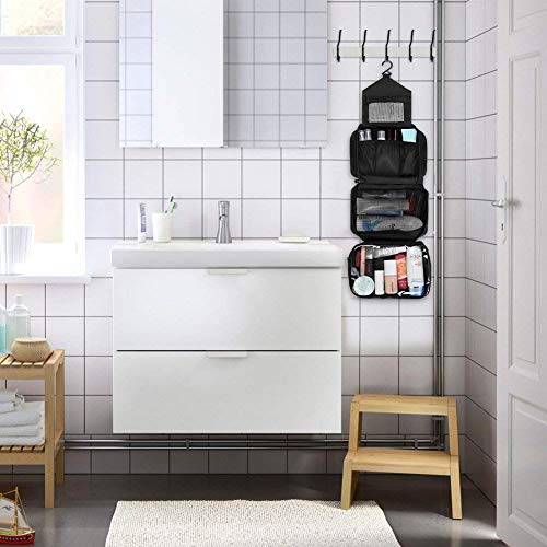 - ORGANIZADOR EFICIENTE - Ya sea hombre o mujer, la bolsa de aseo está diseñada para adaptarse a todos los artículos voluminosos de la farmacia, como espuma de afeitar grande o latas de laca para el cabello. La forma inteligente de la bolsa no ocupa más espacio del necesario en su maleta, carro, bolsa de viaje o equipaje de mano.