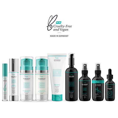 - ✅ NO TESTADO EN ANIMALES, VEGANO, FABRICADO EN ALEMANIA: ninguno de nuestros productos ha sido testado en animales, no contienen perfume y son completamente veganos. Además, prescindimos de aditivos cuestionables: SIN parabenos, SIN aceites minerales, SIN PEG. Nuestra crema facial de noche se fabrica y prueba dermatológicamente en Alemania.