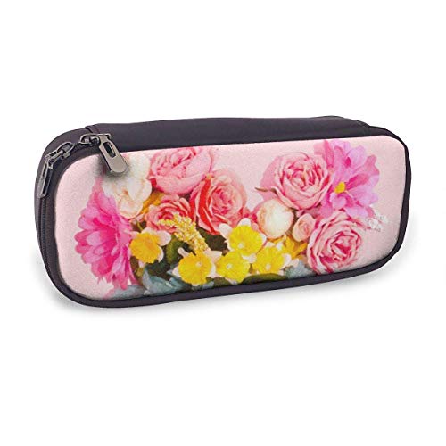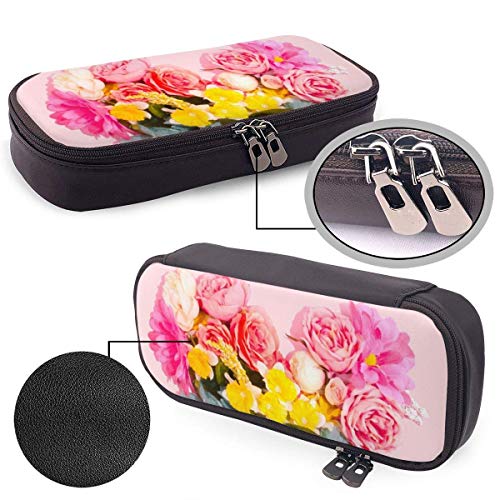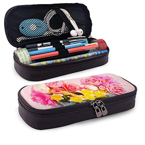 shenguang Love Flower Estuche de cuero para lápices con portalápices, papelería de gran capacidad, bolsa de cosméticos, auriculares Bluetooth, útiles escolares, estudiantes masculinos y feme