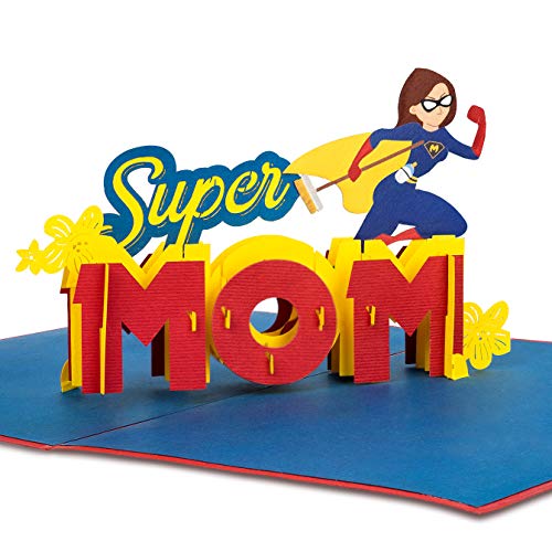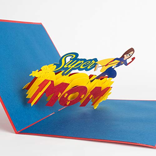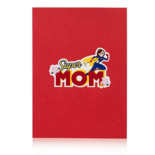 PaperCrush® Tarjeta Pop-Up Día de la Madre"Super Mom" – Divertida tarjeta 3D para la mejor mamá del mundo – Tarjeta de cumpleaños hecha a mano para madre, incluye sobre