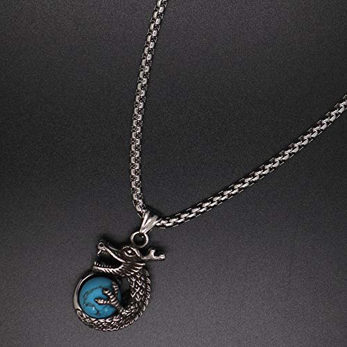 MNMXW Ciondolo in pietra di drago gotico punk freddo in acciaio inossidabile più nuovo-blu intenso