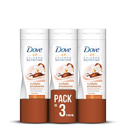 - La loción corporal Dove Cuidado Envolvente suaviza la piel y la nutre en profundidad