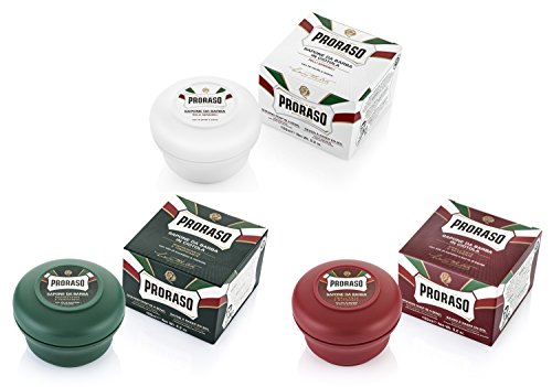 Proraso Taza de jabón de afeitar mixto Triple Pack de 3 x 150 ml Verde,blanco y rojo
