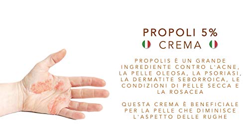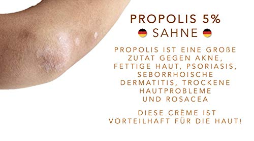 - ? CREMA TODO EN 1 ? Las poderosas propiedades hidratantes del propóleos promueven una piel hermosa y flexible, tienen un alivio calmante para cualquier afección de la piel seca, como eccema o psoriasis. El propóleos tiene una abundancia de minerales que son esenciales para su piel.