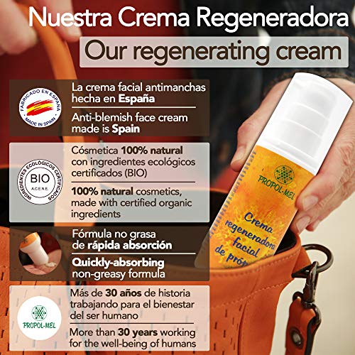 Crema facial natural - 50 ml - Certificado BIO. Crema antimanchas, hidratante facial y reafirmante mujer/hombre con propoleo, karite, rosa mosqueta, jojoba y aceites esenciales.