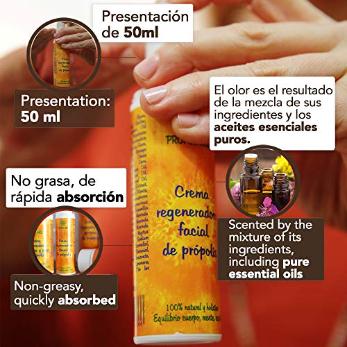 - ? INGREDIENTES NATURALES ? Crema hidratante facial natural con propoleo, karite, rosa mosqueta, jojoba y aceites esenciales con propiedades aromaterapeuticas.