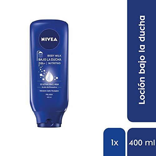 - Contenido del envío – NIVEA Bajo la Ducha Body Milk Nutritivo, leche hidratante no pegajosa para piel seca, pack de 6, 6 x 400 ml, bote.