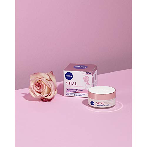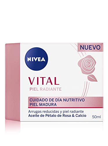 - Contenido del envío – NIVEA VITAL Piel Radiante Cuidado de Día Nutritivo, crema facial para pieles maduras, revitaliza la piel y reduce las arrugas, 1 x 50 ml, bote