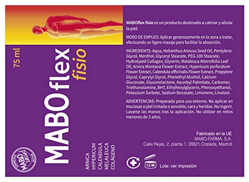 MABO Flex Fisio 75 ml - Crema de Masaje para Alivio de Dolores Musculares y Articulaciones Arnica Caléndula Mentol Hypericum Colágeno