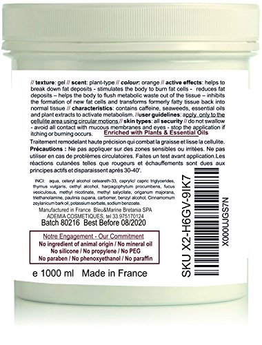 Hot Gel Adelgazante y Anticelulits ● Thermo Gel con Algas, Café y Aceites Esenciales ● Efecto Calor Drenante y Quema Grasa ● Reductor para Abdominales marcados Hombres ● Moldear la Silueta Mujeres ● bleumarine Bretania, producto profesional Made in France