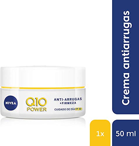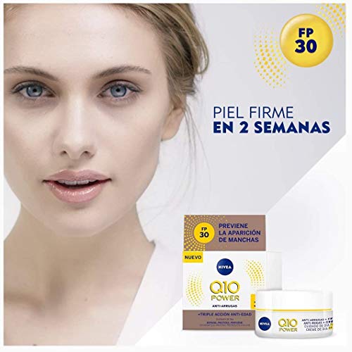NIVEA Q10 Power Antiarrugas Cuidado de Día Triple Defensa FP30 (1 x 50 ml), crema hidratante antiarrugas, crema facial con protector solar 30, crema de día