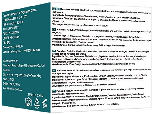 - Cambia el microambiente de las uñas: Los hongos ya no pueden sobrevivir. La fórmula destructora de uñas fúngica mejora la integridad de la superficie de la uña y es un especialista probado para tener un efecto antifúngico físico. Nuestro producto degrada significativamente los efectos de los hongos que generalmente causan onicomicosis (infecciones por hongos en las uñas).