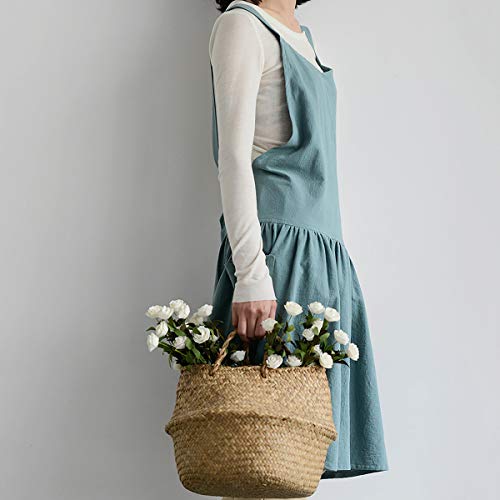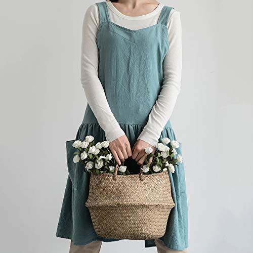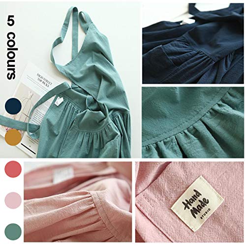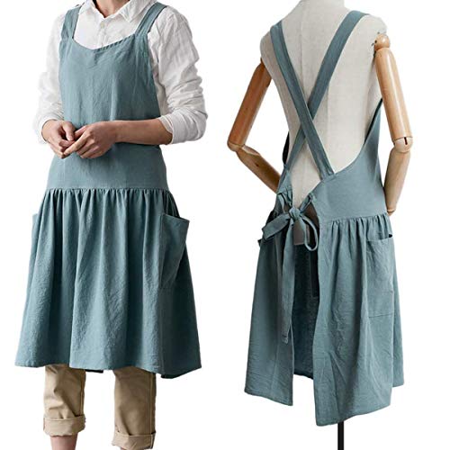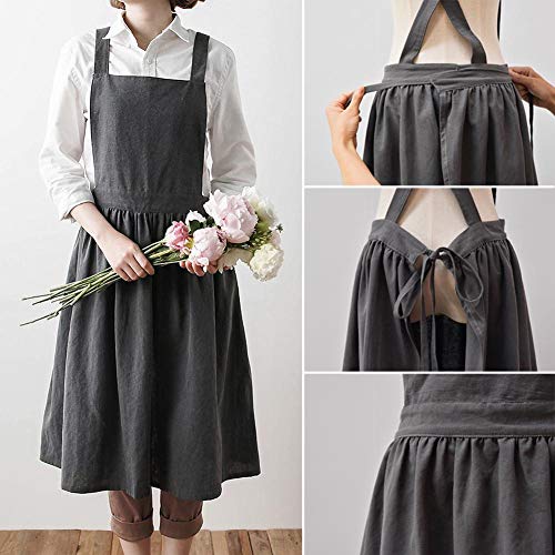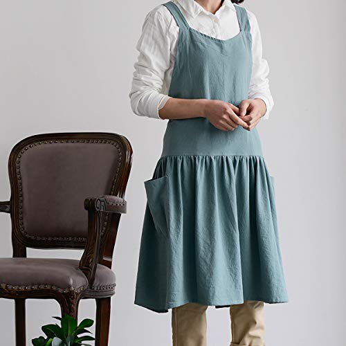 - ★ Estilo de diseño simple y elegante: el diseño de la falda plegable le da a este delantal elegancia y ternura. El diseño de espalda cruzada hace que este delantal ya no se resbale del hombro. 2 bolsillos delanteros grandes añaden más practicidad a este delantal