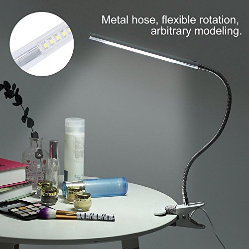 lámpara de escritorio LED, lámpara de mesa de lectura flexible Lámpara de tubo de metal con base de mesa de interfaz USB con clip para uso autónomo o Clip en la mesa