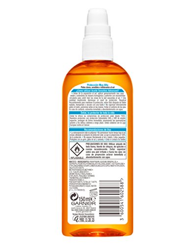 Garnier Delial Sensitive Advanced - Aceite Protector Solar para Pieles Claras, Sensibles e Intolerantes al Sol, IP50+ - 150 ml