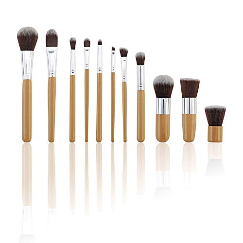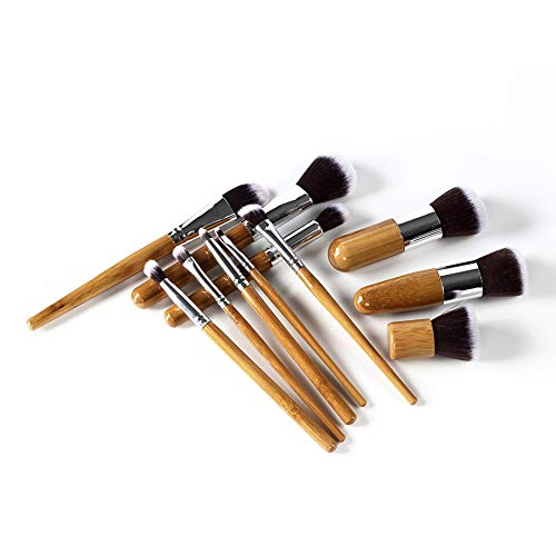 WZRYJS - Juego de pinceles de maquillaje profesionales, mango de bambú Premium, para base de maquillaje, pincel corrector, delineador de ojos, polvos, crema, set de pinceles con bolsa de 11 unidades