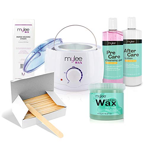 - KIT DE CERA COMPLETO: todo lo que necesita en un kit, incluye el calentador de cera Mylee (Enchufe europeo), la olla de cera Tea Tree, espátulas, tiras, cuidado previo y loción para el cuidado posterior