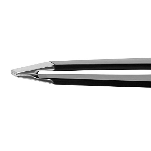 - Punta oblicua ideal para retirar sin esfuerzo tanto los pelos más cortos como los más finos desde la raíz, para evitar que se partan y se irrite la piel