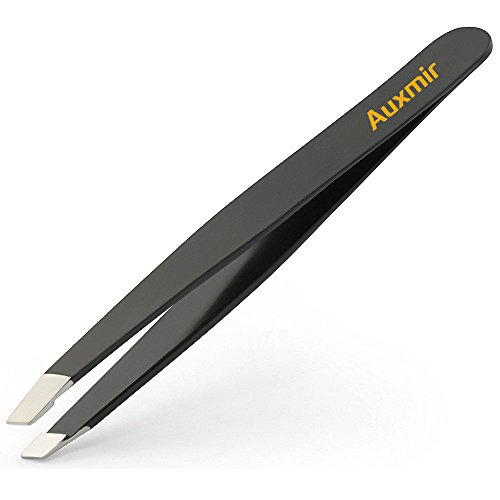 Auxmir Pinza de Cejas Profesional, Pinzas de Depilar con Precisión, Acero Inoxidable para Depilación de Cejas, Herramienta de Cuidado Facial para Mujeres y Hombres, Negro