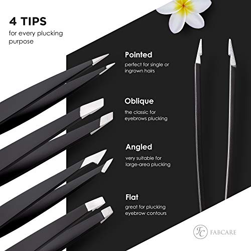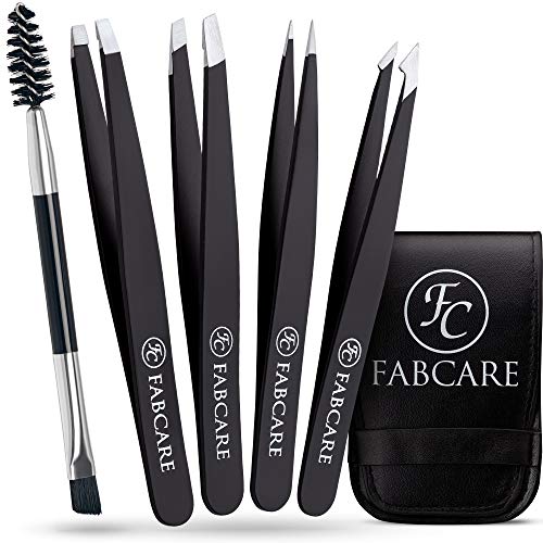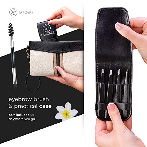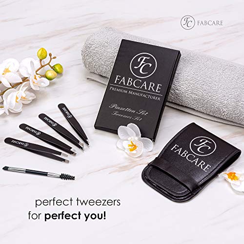 FABCARE Set de pinzas de depilar para las cejas con cepillo (de cinco piezas) - Punta mejorada - Pinzas de depilación para cejas - Pinzas cejas professional