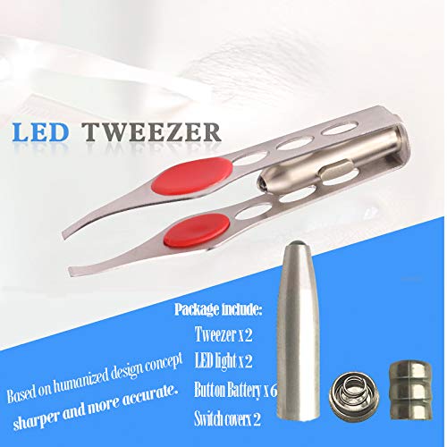 pinzas cejas,pinzas led depilar,kitteny Herramienta de maquillaje para cosméticos de cejas, pinzas de acero inoxidable con luz LED para quitar el pelo de pestañas