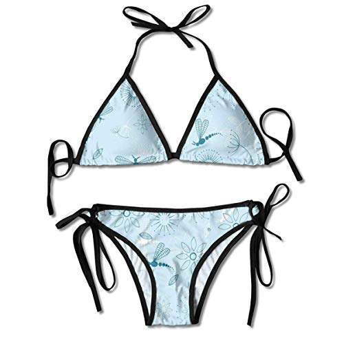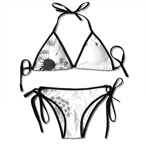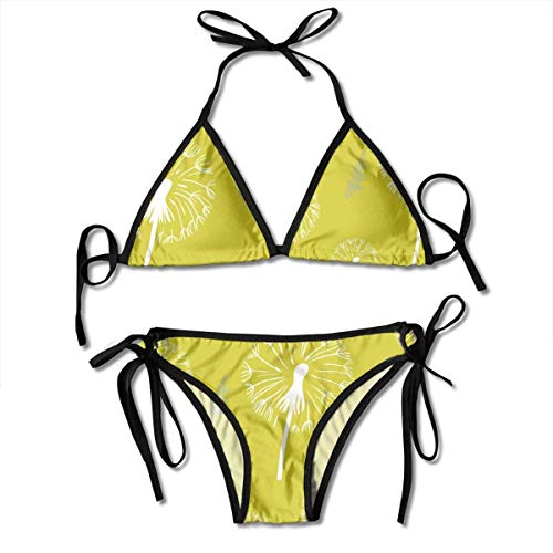ERTERT Mujeres Halter Tanga Silueta Flying Diente de león de Dos Piezas Bikini Set Tie Side Bottom Swimwear Beachwear Traje de baño Negro