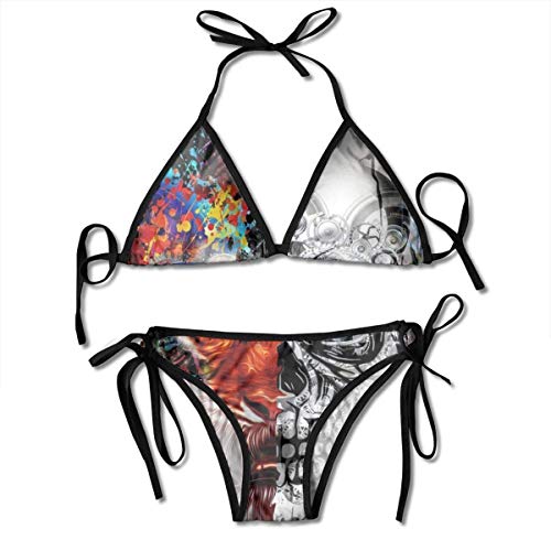 Conjunto de Bikini de triÔngulo con la Mitad del crÔneo Humano de León con Traje de baño de Dos Piezas para Mujer