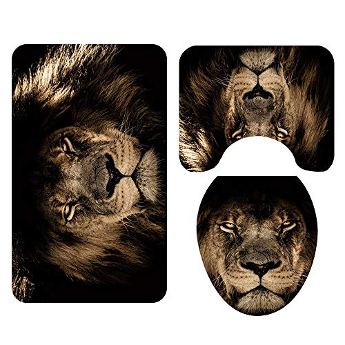 Mihaojianbing Baño Creativo León Estampado Cortina De Baño Alfombra De Piso Cuatro Piezas Baño Inodoro Antideslizante Alfombra Absorbente/Franela/Esponja/Malla De PVC sin depilación