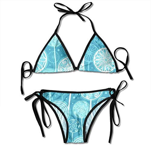 Resumen Diente de león Plantas Patrón Vector Azul 2 piezas Tube Top Bikini Mujeres Halter Traje de baño Corbata Inferior TriÔngulo Playa Piscina