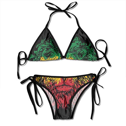 Traje de baƱo de cabestro Bikini de inmersión Rasta Colores de la bandera etĆope en Grunge Cabeza de león incompleta con arte de fondo Traje de baƱo verde claro y amarillo