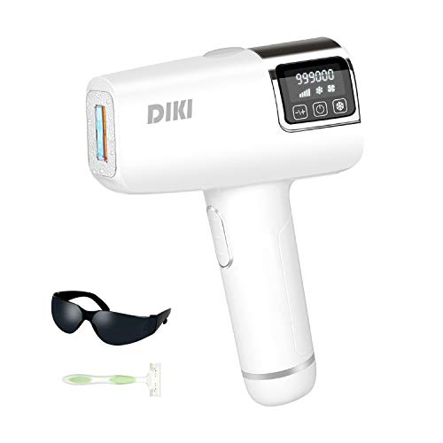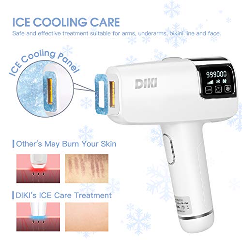 Depiladora de luz pulsada, DIKI IPL dispositivo de depilación permanente profesional 999,000 Destellos Compresor de hielo 5 niveles de energía 2 modos Pantalla LED,para cuerpo/cara/Bikini/axilas