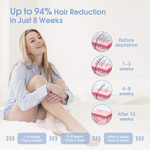 - ?【Depilación Eficiente Especial】 Gracias a los tratamientos con Depiladora de Luz Pulsada, los folículos capilares fueron hipnotizados a las 4 semanas, Más del 75% del cabello comienza a caerse naturalmente. y el cabello cayó permanentemente a las 8-12 semanas. y elegante se puede llevar a cualquier parte con usted y se puede tratar de manera cómoda y conveniente en cualquier momento