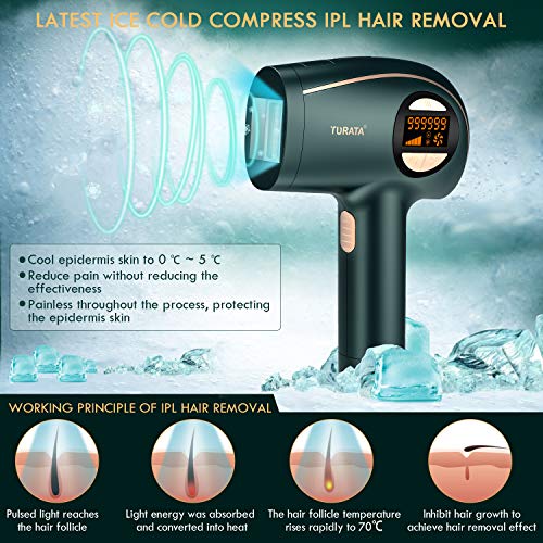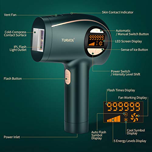 TURATA IPL Depiladora de Luz Pulsada, 999,999 Flashes Depilación Permanente Enfriamiento Disparos de Depilación para Cuerpo y Cara Dispositivo Láser Dolor para el Hogar para Cuerpo y Cara para Mujer