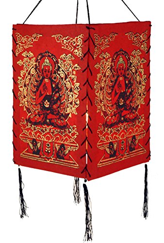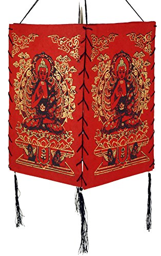 Guru-Shop Tulipa de Papel Lokta, Lámpara de Manta Hecha de Papel Hecho a Mano - Buddha 2 Red, PapelLokta, 28x18x18 cm, Lámparas de Techo Asiáticas de Tela de Papel