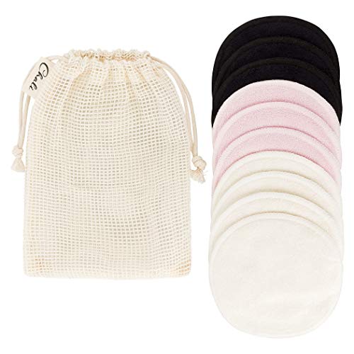 Chali® 10x Discos Desmaquillantes Reutilizables de Bambu y Algodon, Toallitas Desmaquillantes Lavables, Almohadillas (Negro, Rosa, Blanco) incl. Bolsa de Lavar