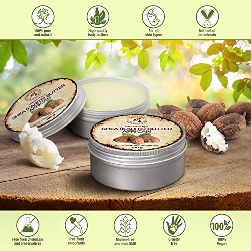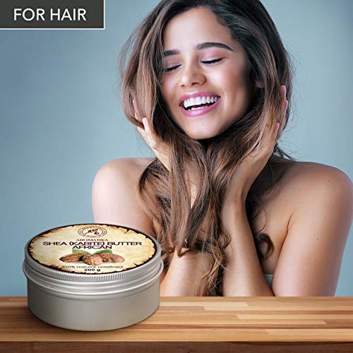 Manteca de Karité 200g - Africana -Ghana - Sin Refinar - Prensado en Frío - 100% Puro y Natural - Mejor para el Cabello - Piel - Labio - Cara - Cuidado del Cuerpo - Frasco de Aluminio