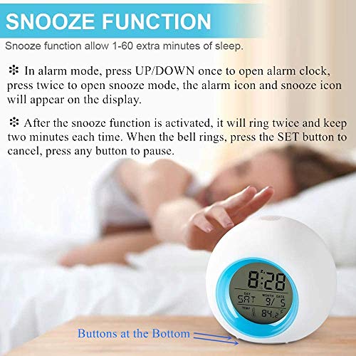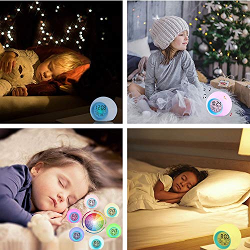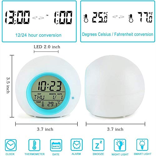 - ?【7 colores de luces】 Este Despertador pueden tranformarse automáticamente 7 colores, puede tocarlo para activar / cerrar la luz. También es muy conveniente mirar la hora por la noche. Nota: el color de la luz no se puede arreglar.