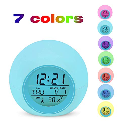 Despertador Digital Electrónico, Lypumso Reloj Alarma con 7 Colores Luz de Noche, Pantalla LED con Hora, Fecha, Temperatura, Función Snooze [Regalo]