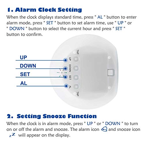 - 【LED Pantalla】LED pantalla mostra la hora, día y temperatura de habitación. Tiene forma 12 horas y 24 horas para elegir, y puede cambiar la forma de temperatura entre Fahrenheit y Celsius de acuerdo con sus necesarios