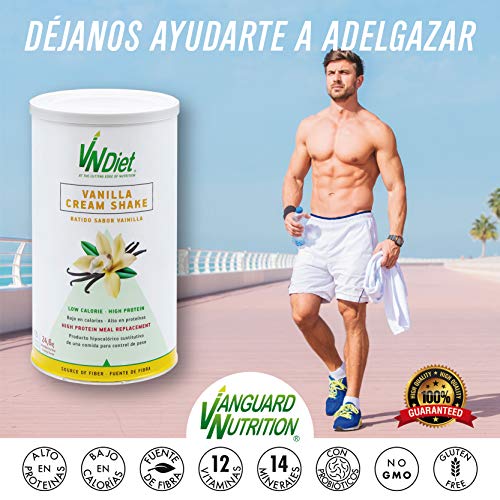 VNDiet - Batido Sustitutivo de Comida para Dieta | Batido para Adelgazar con Proteínas, Reemplazo Comida, Muy Saciante, Bebida Dietética para Adelgazar Rápido, 490gr, Sabor Vainilla