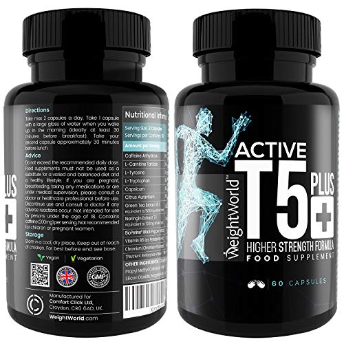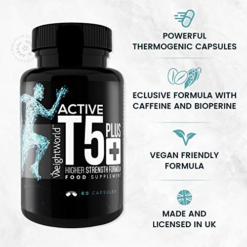 - ✔ 100% NATURAL, VEGANO, SIN GLUTEN Y APTO PARA DIETA KETO - Nuestra fórmula quemagrasas potente y rápido Active T5 de WeightWorld sólo contiene ingredientes 100% naturales y de origen vegetal, por lo que es perfecto para una dieta vegana y la dieta keto puesto que aumenta la cetosis por lo que es perfecto para adelgazar tanto para mujer como para hombre.