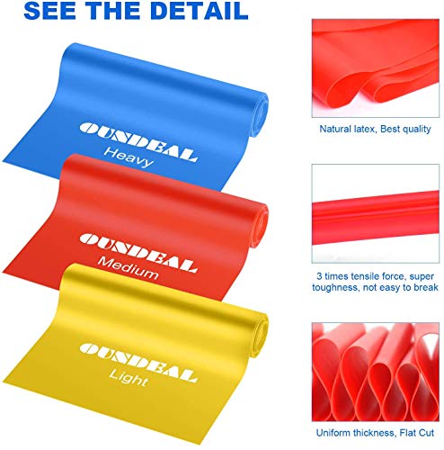 OUNDEAL Bandas Elasticas Resistencia, Bandas Fitness con 3 Niveles de Fuerz, Cintas Elasticas de Fitness para Yoga, Pilates, Crossfit, Estiramientos