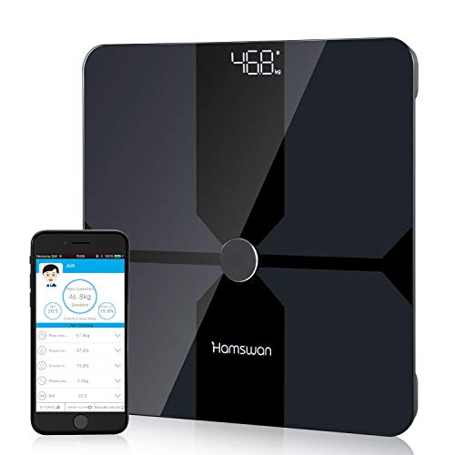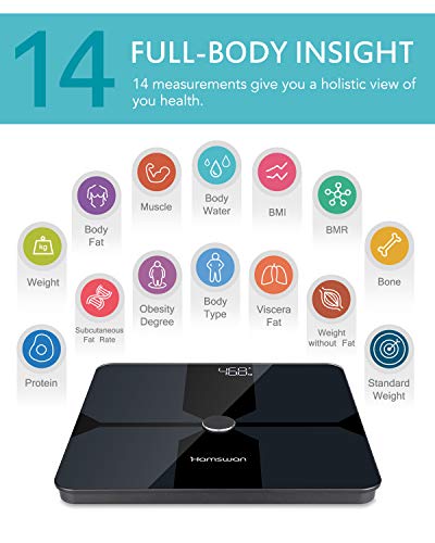 HAMSWAN Báscula Grasa Corporal Más de 14 Funciones, [2020 Versión Nueva] Báscula Analisis Corporal Bluetooth, Báscula de Baño Monitores de Composición Corporal para Móviles Andriod y iOS
