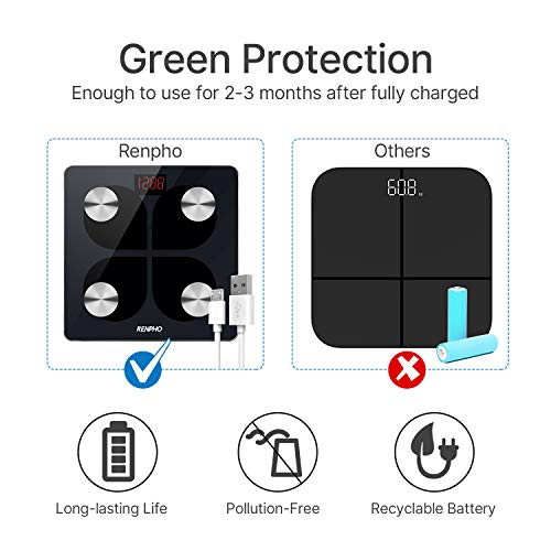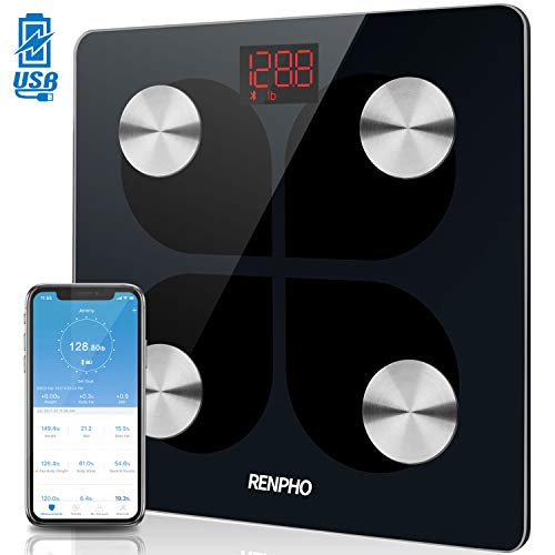 RENPHO Báscula de Grasa Corporal con Bluetooth - Báscula Elegante para Baño BMI Digital Escala, Analizador Recargable de Composición Corporal con USB y Aplicación